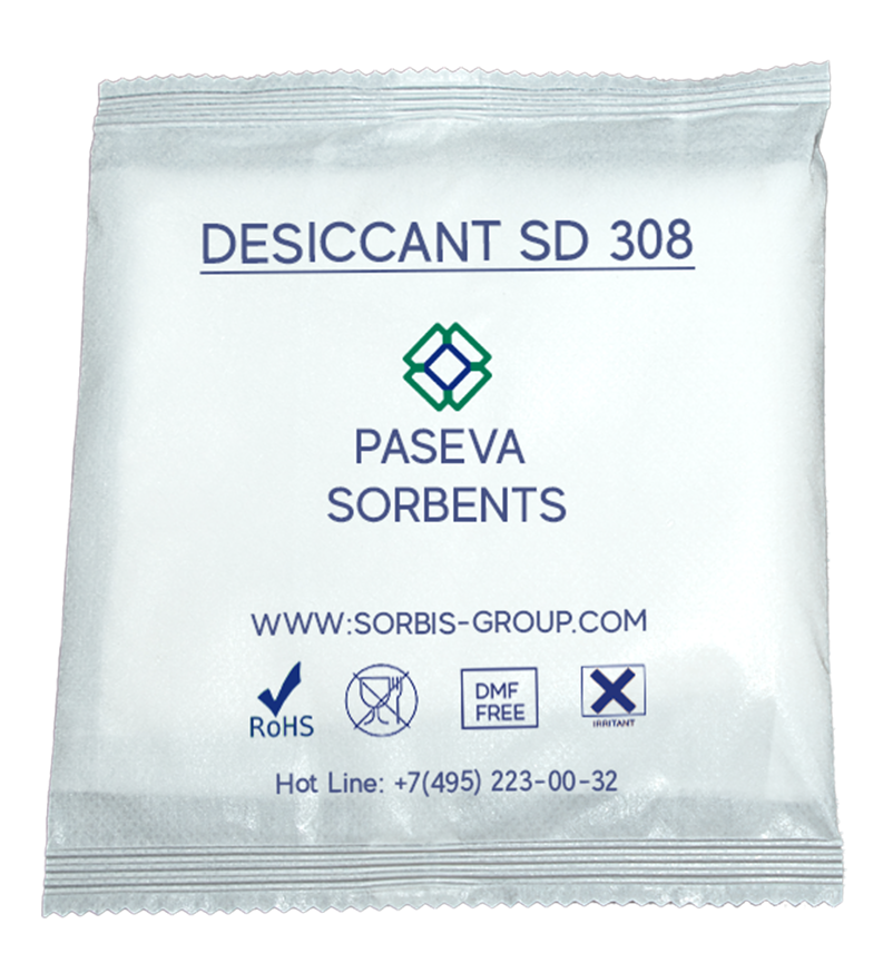 Осушитель повышенной влагоемкости в нетканом материале ОВНМ «SORBIS 8435» состоит из двух частей: активное вещество (сорбент повышенной влагоемкости «PASEVA») и двухслойная оболочка из нетканого материала в виде пакета стик. Разработан для поглощения парообразной влаги и снижения влажности в контролируемой среде. Такой как полиэтиленовые пакеты, картонные коробки и контейнеры. Наша запатентованная формула осушителя превращает влагу в гель, герметичный и не допускающий утечек. Исключен риск повторного испарения, которое может нанести вред вашей продукции.
